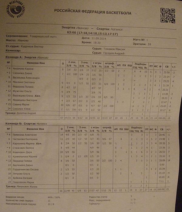 Цитата Гость (  ) "Энергия" - "Спартак"(Ногинск) - 63:66 Спартак с победой! Протокольчик сканерните